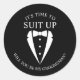 "SUIT UP" Black Tuxedo Suit Groomsman Proposal Classic Round Sticker