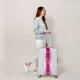 elegant suitcase with a pink floral band from Paris with its monuments.