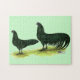 Sumatras are the long-tailed game fowl of Indonesia. The blacks show metallic green sheen over their plumage. The roosters often have multiple spurs.