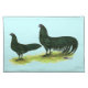 Sumatras are the long-tailed game fowl of Indonesia. The blacks show metallic green sheen over their plumage. The roosters often have multiple spurs.