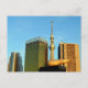 A view of Tokyo Skytree tower and the Golden Flame of the Asahi Beer Hall from the banks of the Sumida river in Tokyo.