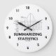 Can you summarize statistics? No need to be a statistician to enjoy this polyester clock featuring the normal distribution curve (bell curve), complete with percentages under the curve and Z-scores along with the caption that says it all: "Summarizing Statistics".