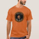 My 11 yo wore adult XL (5’7” 165#). The 8yo is small framed. She wore adult small and tied it in the back. Grandma wore adult large with long sleeve shirt underneath. Tall girl adult medium. Dark haired male adult large. Good quality dark Heather gray, Gildan brand shirt. -it was next up from basic choice and cost about $20 per shirt. Not too thick or thin. Washed and dried well, no major shrinkage. Not see-through. Can wear a bra under it fine. Screen print is just as shown and well done, front and back.