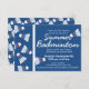 Simple fun invitation for suitable for summer badminton events and sporting parties. Features simple shuttlecock art with white feathers and a red stripe, on a blue court with white line. The reverse of the invite has a repeating shuttlecock pattern. Personalize with your own event details. Design and graphics by Sarah Trett. www.sarahtrett.com for www.mylittleeden.com