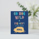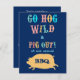 Here's a cute summer barbeque party invitation, with colorful typography on the front that says "GO HOG WILD & PIG OUT", with your custom text. At the bottom is a fat, light gold colored pig. The image and text are placed on a navy blue background. The back of the invitation has plenty of room and text fields to make it say whatever you'd like. Fun!