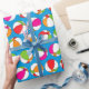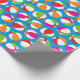 Beach balls in orange, pink, green, red and white on a blue background makes a fun gift wrap for summer birthdays and other occasions.