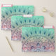 Elegant, stylish bohemian hand drawn mandala, trendy tribal flower, beach, sea, sand, exotic, tropical, mint, pink and white background. Feathers, dots, stripes, triangles, geometric shapes. Mandala floral, mystical, dreamy, henna, boho, midnight blue, violet, pink, blush, coral, mint, white summer bright colors. Feminine, girly, elegant, chic, trendy, simple, fashion, artistic, art, artwork.