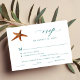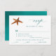 Simple minimalist modern aqua teal turquoise ocean cruise or beach destination wedding vow renewal or any other occasion response rsvp card template with menu options featuring a chic trendy blue green calligraphy script.
