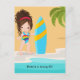 Girl summer beach party birthday party invitation featuring a cute little brunette surfer girl customizable to your specifics.