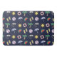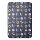 Dark blue casual holiday themed bath mat with colorful illustrated beach collage.