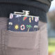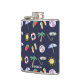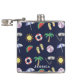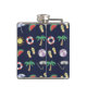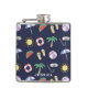 Dark blue holiday themed hip flask with colorful illustrated beach collage.