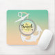 A mouse pad for beach lovers, this nautical design features an anchor and rope with porthole frame and calligraphy text reminding you the beach is calling. The soothing ombre gradient background colors range from aqua to peach.