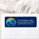 Summer Beach Palm Trees Sun Retro Style Navy Blue Return Address Labels. Perfect for the family beach house or mailing out items for a beach family reunion.
