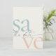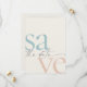These 5" x 7" save the date cards feature a minimalist design in seafoam and blush letters with placeholders on the back for the engaged couple names, wedding date, and venue information and your favorite photo!