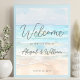 Welcome guests in style with this elegant seaside wedding sign featuring a calming watercolor background in soft shades of blue and tan. The slightly abstract coastal artwork captures the peaceful feeling of waves meeting the shore for a relaxed and natural vibe.