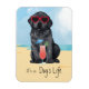 It’s a dog’s life! Be cool and celebrate the dog days of summer with this cute Black Labrador Retriever wearing sunglasses and relaxing with a drink.