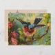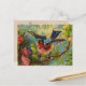 This colorful print illustrates a bluebird resting on a branch in a flower filled forest. This view shows the bird as it is about to take flight. Bright blue, pink, yellow and green colors make an exciting image for decor and personal accessories. In keeping with the antique style, the reverse side of the postcard also features a nineteenth century design.