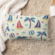 Summer themed throw pillow features palm trees, sail boats and beach balls