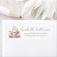 This sweet return address label features a neutral-toned boho surfboard accented with delicate orchid flowers and soft tropical foliage on the left side. Your name appears in warm tan handwritten script, while the address is printed in a clean brown serif font on the right. The relaxed coastal style creates a soft and modern look, perfect for baby shower invitations, thank you notes, or beach-themed celebrations.