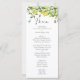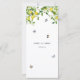 This is a watercolor lemon botanical themed wedding menu. The design shows a branch of a summery lemon tree, its white flowers, green leaves and fluttering butterflies.