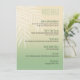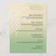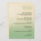 This lovely beach dinner menu features sheer white palm fronds silhouetted against an ombre, jade green background. Comes in 5 colors: jade, mint blue, pink, peach and blush. Click the CUSTOMIZE IT button to personalize with your own text. Many matching products available. SEE ENTIRE COLLECTION ON: glamprettyweddings.com. For questions or custom requests, email: cheryl@glamprettyweddings.com/contact. "Summer Breeze" original design by Cheryl Daniels © 2014.