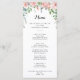 This summer breeze floral calligraphy dinner menu card is perfect for a rustic wedding. The design features pink, blush, purple hand-painted watercolor rose flowers with green foliage.