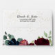 This “Summer Celebration” wedding invitation envelope inspires a traditional and elegant floral atmosphere for a garden wedding mailing. With pink, royal blue, and cabernet burgundy flowers, the rich reds and navy palate combined with gold glitter compliment formal spring, summer and autumn themes, creating a classic and versatile luxury marriage celebration experience. The envelope has return address printed on the back to allow for a clean look on the front.