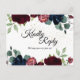 This “Summer Celebration” wedding response postcard inspires a traditional and elegant floral atmosphere for a garden wedding. With pink, royal blue, and cabernet burgundy flowers, the rich reds and navy palate combined with gold glitter compliment formal spring, summer and autumn themes, creating a classic and versatile luxury marriage celebration experience. The postcard allows for an easy rsvp for your guests while eliminating the need for an envelope.