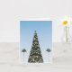 Summer Christmas, Palm tree, New Year Christmas Card - A towering artificial Christmas Tree with 2 Palm Trees flanking it makes for a Summery Christmas. It's a warm weather vacation with no snow here! Inside are 2 bottle brush trees and the sentiment "Merry Christmas and Happy New Year." The text may be changed or deleted altogether.