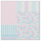 A very pretty fabric, with a faux patchwork pattern of Lipstick Pink Roses and tiny White Butterflies on a Turquoise Blue background, teamed with matching Polka Dots, Check Ginghams and Stripes. Part of the Posh & Painterly 'Summer Days' collection.