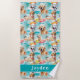 Enjoy your day at the beach or pool with our colorful and playful beach towel featuring a fun dog pattern, perfect for any dog lover or kid who wants to make a statement at the beach or pool. This towel is personalized with your name, making it a unique and thoughtful gift for any dog lover or beach enthusiast. It is made from high-quality, absorbent material that will keep you dry and comfortable all day long. So whether you're soaking up the sun or taking a dip in the water, our dog-patterned beach towel is the perfect accessory for a fun and relaxing summer day.