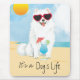 It’s a dog’s life! Be cool and celebrate the dog days of summer with this cute American Eskimo Dog wearing sunglasses and relaxing with a drink.