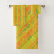 Colorful bath towel set with yellow, orange, lime green pattern will brighten up your bathroom.