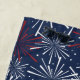 Summery monogrammed beach towel features a bursting fireworks pattern in patriotic red, white and blue, with your single initial monogram centered at the bottom in coordinating navy blue.