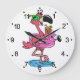 Summer Flamingo cartoon | choose background color Large Clock