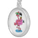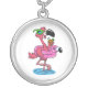 Summer Flamingo cartoon | choose background color Silver Plated Necklace