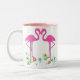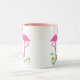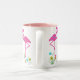 Original graphic artwork of pink flamingo yard stakes with colorful and whimsical flowers. Colorful fun mug that would make nice gifts, even add a few flowers to the mug for a sweet anytime gift.