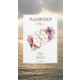 Modern and Colorful Floral Invitation Wedding Destination, like passport. Compass monogram crest on the front page. Perfect design for your summer wedding