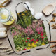Dress up in the kitchen with this floral themed apron featuring an all-over print design that features the photo image of a colorful, summer flower garden that include Zinnias, pink Astilbe, and yellow Lilies. A lovely, floral design! You may customize your apron strap color if desired.