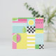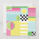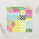 Cute summer design, watermelon, kiwi fruit, sea waves, colorful mosaic, pink, yellow, green, blue, pop art pattern