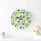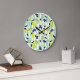 Summer Fruit Pattern Yellow Lemons on Blue Stripes Large Clock