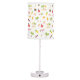 Add a unique and personalized style to any room decor with a custom made lamp. Summer Fun Beach Theme Pattern with Palm Trees, Starfish, Beach Balls, Sun Umbrella and more beach items. Table Lamp can also be styled as a tripod or lampshade only. Change the color of the trim and option of the lampstand - silver or white.