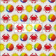 Fabric features an original beach-themed marker illustration of red crabs, beachballs and summer sunshine. Perfect for summertime!
