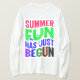 playful phrase Summer Fun Has Just Begun in colorful, bold lettering, perfect for setting the mood for a fun-filled season ahead.