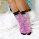 Whimsical peach personalized novelty socks created using hand drawn watercolor peaches on a vivid pink background. Visit my store for more fun fruit pattern products. Original art by Leslie Larson.