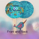 Cool off with this cute personalized hand fan with the tropical vibe for the pool party featuring palm trees, crystal clear water, colorful birds, turtles, and inflatables. Update the name to make it yours.