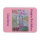 What can be better on a hot summer afternoon than wandering into the garden and relaxing on the bench. In this charming watercolor, the blue bench sits on the lawn surrounded by pretty flowers, lavender and trees. Feel the sun on your face when you choose this soft pastel summer garden bench art.