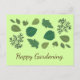 Variety of leaves from my summer garden are printed on custom postcards. The leaves include blueberry, basil, carrot, parsley, spinach, strawberry, and tomato. The text says, Happy Gardening, which can be easily customized on the template form. The background color of light green can also be customized. Thank you for shopping at CherylsArt on Zazzle.