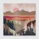 An abstract landscape with unique colors and textures showing a nature landscape with a rising sun and two geese in shades of orange, beige, brown and pink.