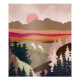 An abstract landscape with unique colors and textures showing a nature landscape with a rising sun and two geese in shades of orange, beige, brown and pink.